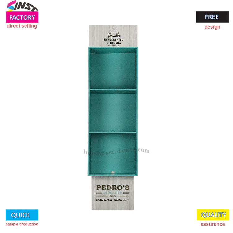 ຊັ້ນວາງສະແດງເຄື່ອງຂຽນ corrugated ນີ້ສ່ວນໃຫຍ່ແມ່ນໃຊ້ເພື່ອສະແດງລາຍການເຄື່ອງຂຽນຕ່າງໆ. ຮ່າງກາຍໂດຍລວມແມ່ນຮູບສີ່ຫຼ່ຽມມົນແລະແມ່ນເຮັດດ້ວຍໄມ້ແສງສະຫວ່າງຫຼືເປັນສີຂາວຜະລິດຕະພັນເມັດພືດທີ່ເຮັດໃຫ້ມີຄວາມສົດຊື່ນແລະໂຄງສ້າງ. ຊ່ອງເກັບມ້ຽນແບບເປີດ 3 ໜ່ວຍ ໄດ້ຮັບການອອກແບບເປັນພິເສດຢູ່ດ້ານໜ້າ, ມີສີຂຽວ ຫຼື ສີຟ້າ-ຂຽວ, ເໝາະສຳລັບຈັດຮຽງ ແລະເກັບຮັກສາເຄື່ອງຂຽນ. ບໍ່ວ່າຈະເປັນປຶ້ມ, ປື້ມບັນທຶກຕ່າງໆ, ຫຼືຮູບແບບຕ່າງໆຂອງປາກກາ, ພວກມັນທັງຫມົດສາມາດຖືກວາງໄວ້ຢ່າງປອດໄພພາຍໃນ. ຍິ່ງໄປກວ່ານັ້ນ, ຊັ້ນວາງຈໍສະແດງຜົນນີ້ມີໂຄງສ້າງ trapezoidal ທີ່ເລື່ອນໄປຂ້າງຫນ້າເລັກນ້ອຍ, ເຮັດໃຫ້ມັນງ່າຍຕໍ່ການເຂົ້າເຖິງແລະວາງລາຍການໃສ່ມັນໂດຍບໍ່ຕ້ອງໃຊ້ຄວາມພະຍາຍາມຫຼາຍ.