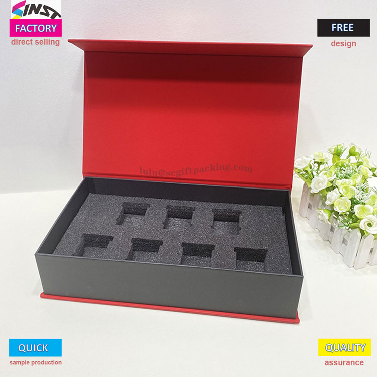 ຫ້ອງຝາກຂອງຂວັນຜະລິດຕະພັນທີ່ມີຂະຫນາດສູງທີ່ສຸດຂອງຜະລິດຕະພັນທີ່ມີມູນທາດຜະລິດຕະພັນທີ່ມີມູນຄ່າສູງໃນຮັງຂອງປະເທດ Cover ແມ່ນອີງໃສ່ການຈັບຄູ່ສີແດງແລະສີດໍາທີ່ຫຼູຫຼາ. ປ່ອງນອກແມ່ນເຮັດດ້ວຍກະດານທີ່ແຫນ້ນຫນາດ້ວຍກະດານສະຫນິດດ້ວຍການເປີດແລະປິດການອອກແບບແມ່ເຫຼັກ. ໃນເວລາທີ່ກ່ອງໄດ້ຖືກເປີດ, ສາຍໂຟມດ້ານໃນດ້ານໃນພາຍໃນພາຍໃນແມ່ນມີຢູ່. ການແບ່ງປັນເອກະລາດຫົກຢ່າງທີ່ລະມັດລະວັງສໍາລັບແຕ່ລະຂວດທີ່ກຽມພ້ອມທີ່ຈະກິນຮັງນົກ, ເຊິ່ງມີທັງຄວາມງາມແລະການປົກປ້ອງທີ່ໃຊ້ໄດ້ດີ. ບໍ່ວ່າຈະເປັນການຂາຍໃນສູນການຄ້າຫຼືໃຫ້ຂອງຂວັນໃຫ້ແກ່ຄອບຄົວແລະຫມູ່ເພື່ອນສະແດງຄວາມຮູ້ສຶກຂອງພວກເຂົາ, ພວກເຂົາທຸກຄົນສະແດງແບບ.